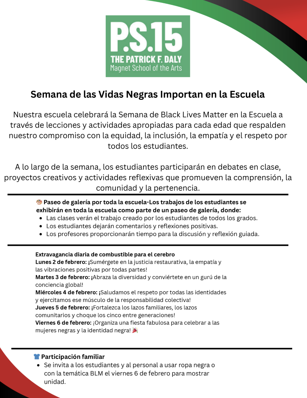 En PS 15, honraremos este mes con nuestra Semana de Black Lives Matter at School.