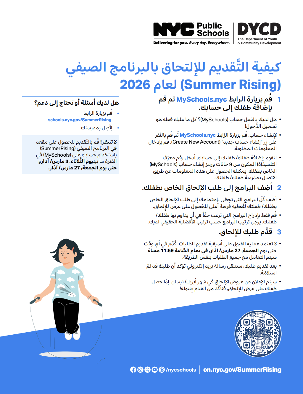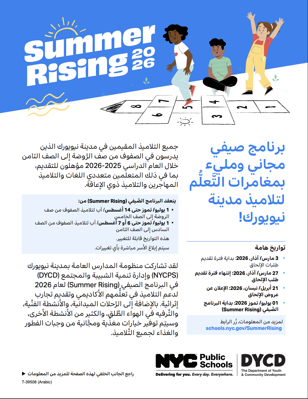 معلومات مهمة للعائلات حول MySchools وبرنامج Summer Rising!
